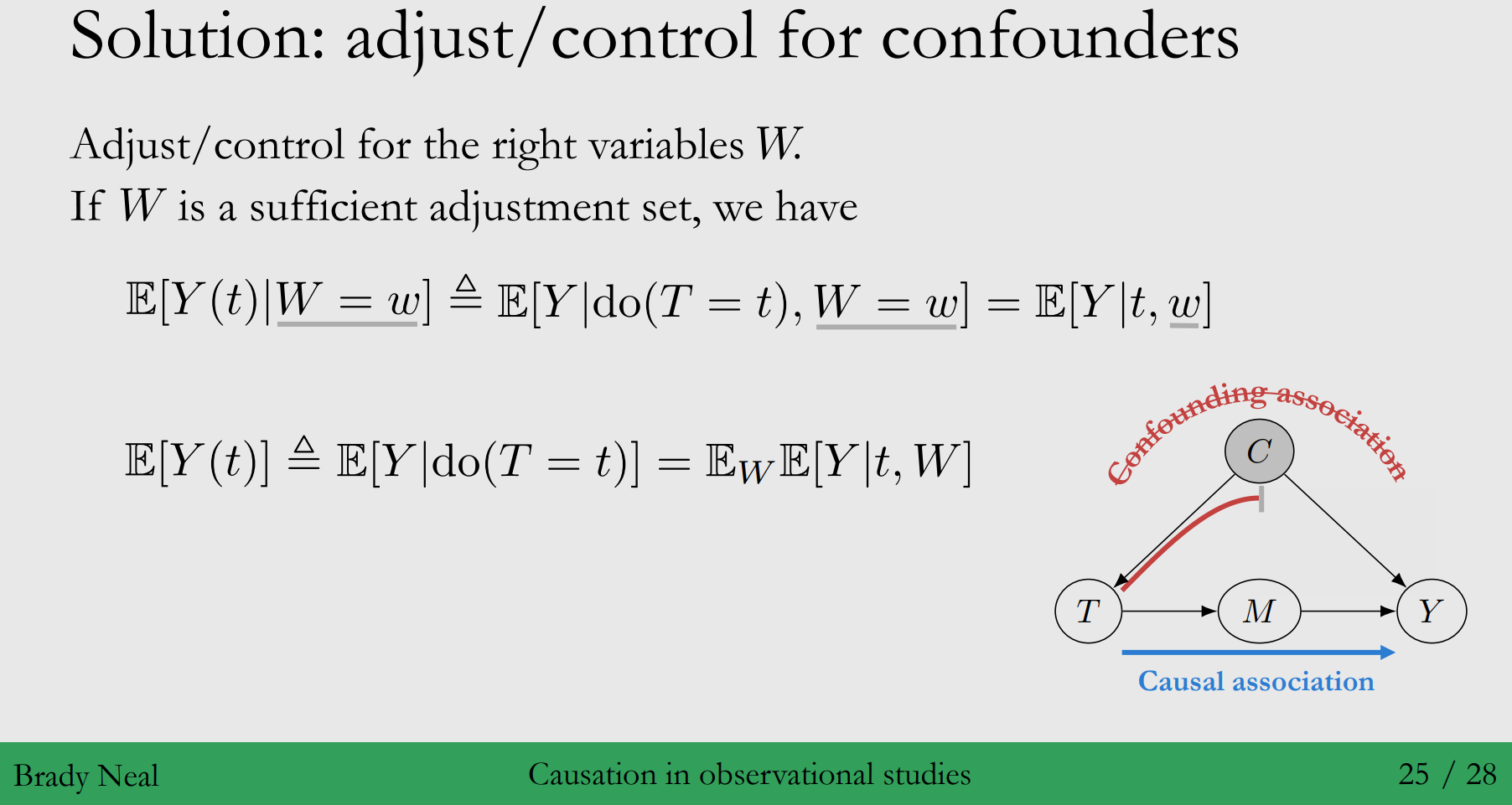 이 때, W (그림에서는 C)를 Sufficient adjustment set이라고 정의해요