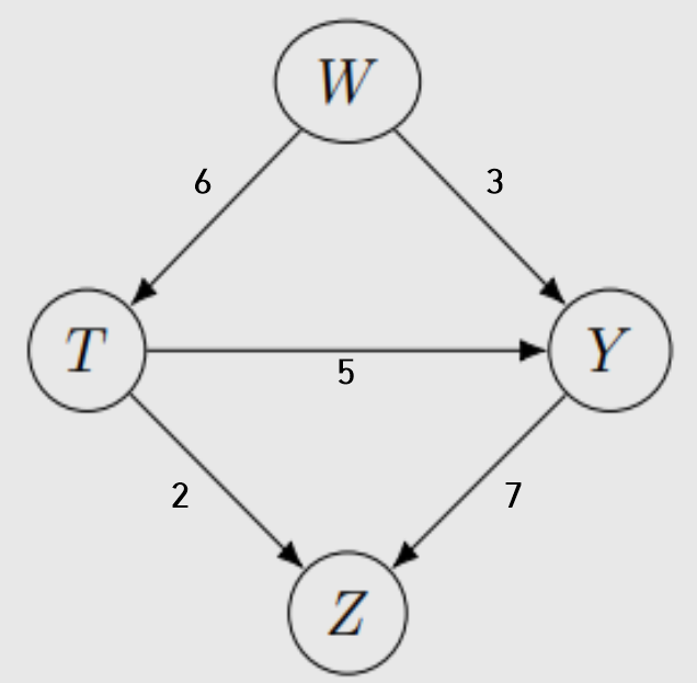 이전 예제에서의 변수간 영향력을 알 수 없으므로 위 그림과 같이 변수간의 관계를 숫자로 표현하였습니다.
