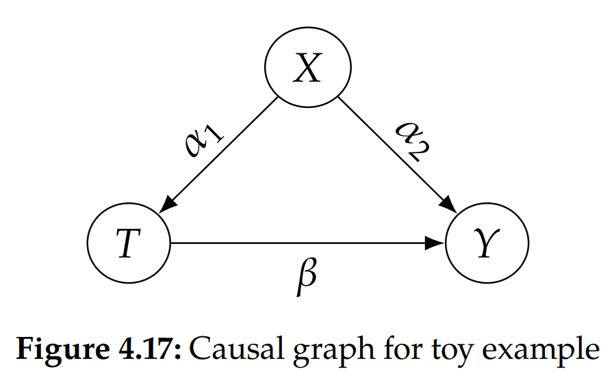 우리가 구하고자 하는 관계는 T가 Y에 미치는 인과관계를 구하고 이때 그림과 같이 5로 설정했습니다.