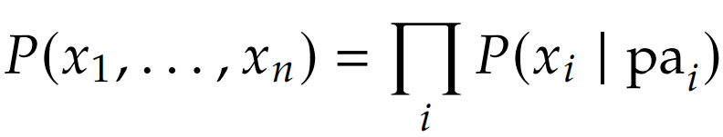 ◦ 과정 : 그럼 지난 시간에 배운 내용을 Remind 해볼까요? 1. Bayesian network factoriazation = Chain rule of probability + Markov assumption - Chain rule of probability : $P(x,y) = P(x)⋅P(y|x)$ - Markov assumption : 모든 노드는 오직 부모 노드로부터 영향을 받습니다.