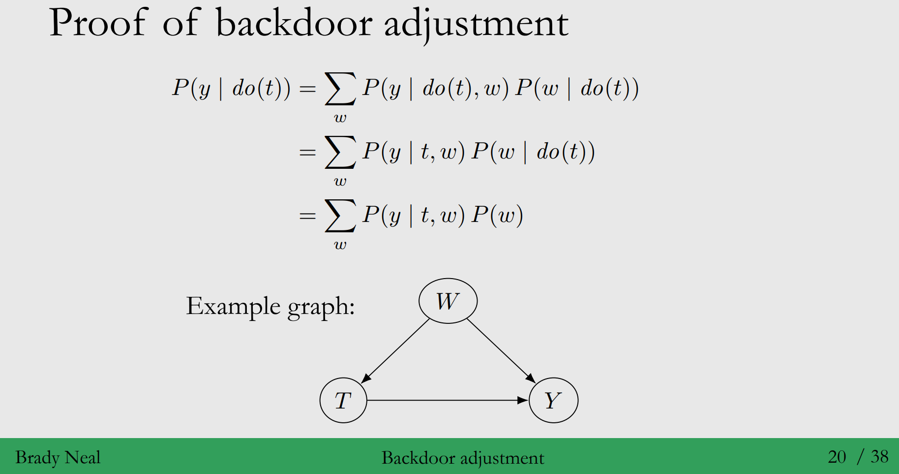 ◦ 의미 : $W$가 Backdoor Criterion을 만족하게 되면, $T$에 대한 $Y$의 Causal Effect를 Identify 할 수 있어요!