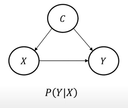여기서 $P(Y|X)$는 인과효과가 아니에요. 왜냐하면 Confounder로 인한, Backdoor path가 열려 있기 때문이죠.